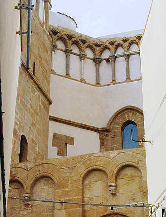 Normannische Blendarkaden am Chor, traditionell aus sich überschneidenden Halbkreisbögen gebildet