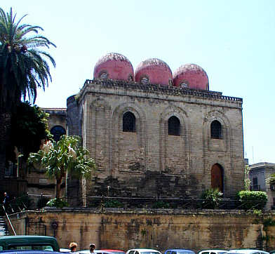 durch Wandvorlagen und Spitzbogen gegliederter Kubus in arabisch-normannischer