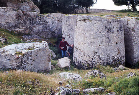 Aus dem anstehenden Fels herausgearbeitete Säulentrommeln, noch nciht vollständig vom Fels getrennt