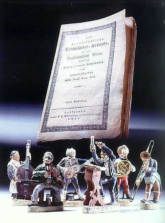 Im Vordergrund karikaturistische Musikerfiguren aus der Werkstatt Anton Sohns, Zizenhausen