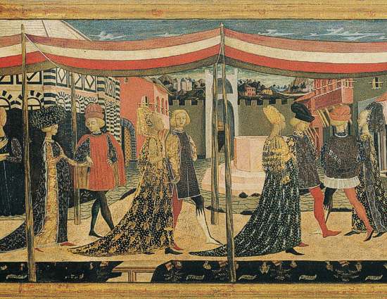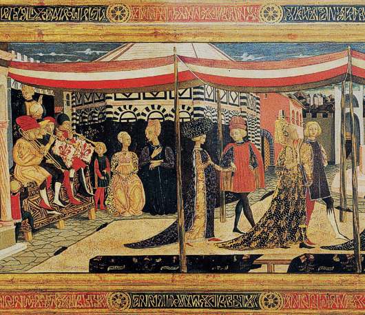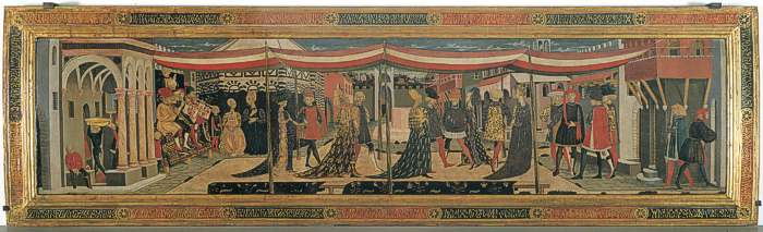 del Fiore. Auf der linken Seite eine Gruppe von Bediensteten,