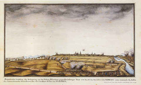 Perspectivische Vorstellung der Belagerung vor der Festung Mannheim vor dem Heidelberger Tor vom 17ten bis 21ten November Anno MDCCXCV uner Commando Sr Exllns des commandierenden Herrn Generalen der Cavallerie Grafen von Wormser