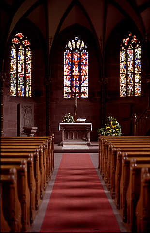 Chor mit 3/8-Schluss, die Kapitelle der Dienste mit Brustbildern der 12 Apostel geschmückt.