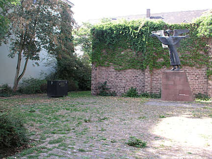 Auf der unbebaut gebliebenen Ecke des Quadrats E 6 in Mannheim aufgestellter Engel als Mahnmal für den Frieden.