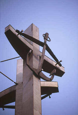 Gekreuzigte Anker der Hoffnung als Symbol der Menschenfeindlichkeit des kommunistischen Systems.