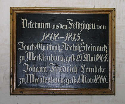 Tafel in der Dorfkirche von Dorf Mecklenburg, Mecklenburg-Vorpommern