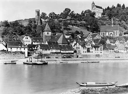 Blick von der gegenüberliegenden Neckarseite auf Stadt und Schloss Badische Bahnlinie Heidelberg - Würzburg |