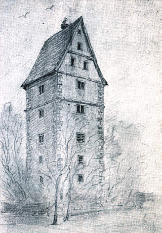 Gröbernhof, ein Turmhaus von 16 m Höhe und 8,6 m Seitenlänge an der Einmündung des Harmersbach- in das Kinzigtal, wohl Rest einer Motte