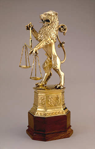 Bild: Tafelaufsatz: Löwe mit Waage (von der "Zunft zur Waag") Carl Thomas Bossard, Luzern 1929 Schweizerisches Landesmuseum Zürich