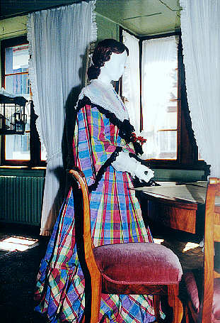 "Gesprächspartnerin" in der Stube des Hauses in eleganter französischer Kleidung