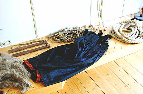 Hanfstricke, rechts ein Seil, wie es zum Abtransport des Holzes