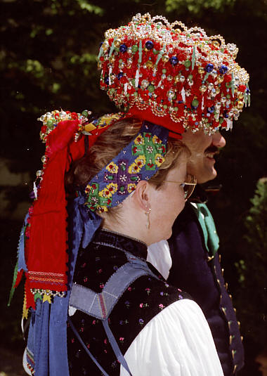 Die unverheirateten Frauen tragen farbenprächtige Schäppel. |