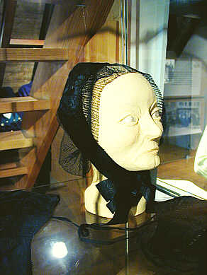 dazu rechts die einfache schwarze Haube und links der Strohhut