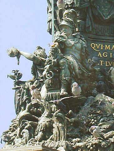 Figur der Constantia (Beständigkeit), die ein Schwert über eine