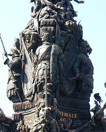 Janustrophäe, mit doppeltem Gesicht, urpsrünglich der Justitia-Figur zugeordnet.