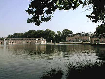 Seitenflügel davon getrennt im Viertelkreis am Teich entlang.