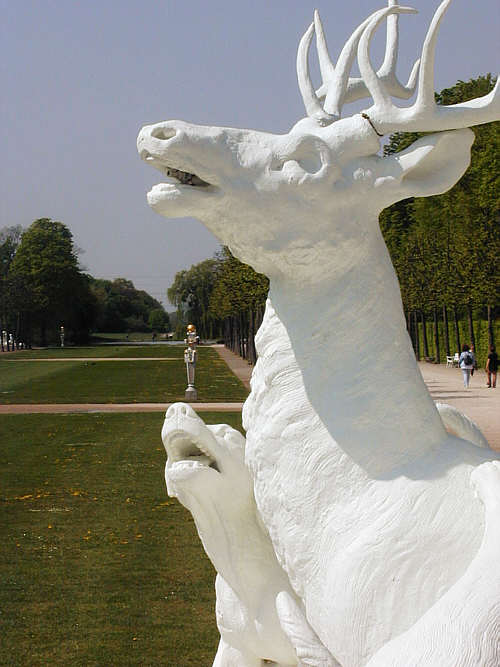Sonne am Abend. Die Hirschgruppe steht daher im Westen des Gartenzirkels,