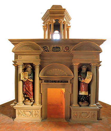 mit 1,35 m hohen Holzplastiken des Propheten Jesaia (links)