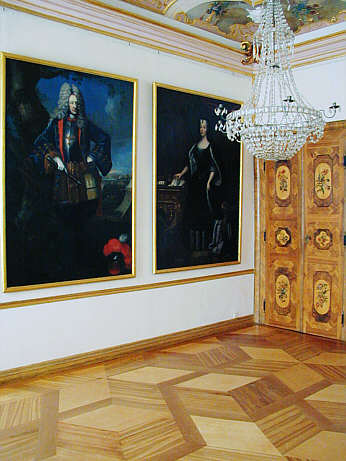 Appartement der Markgräfin Vorzimmer, mit den Porträts des Markgrafen Ludwig Wilhelm von Baden-Baden (des Türkenlouis) und seiner Gemahlin, der Markgräfin Sibylla Augusta von Sachsen-Lauenburg