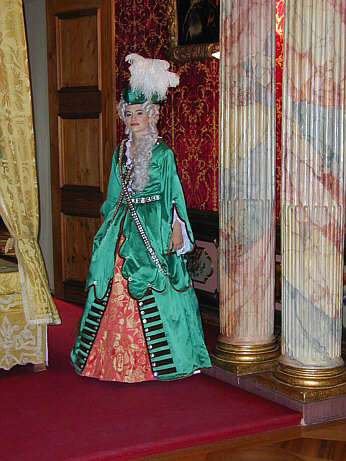 Markgräfin Franziska Sybilla Augusta von Baden-Baden, geborene Herzogin von Sachsen-Lauenburg, im Jagdkostüm in ihren Privatgemächern