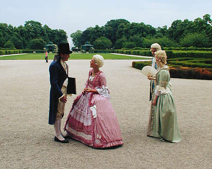 Die Hofgesellschaft divertiert sich in den sorgfältig angelegten Parkanlagen des Schlosses