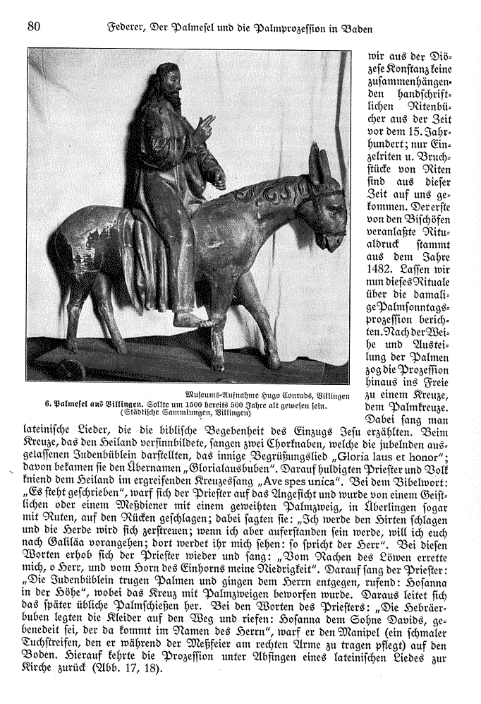 Fritz Federer: Der Palmesel und die Palmprozession in Baden. Liturgisch, kultur- und kunstgeschichtlich, volkskundlich. Mein Heimatland 21 (1934) S. 75-91 |