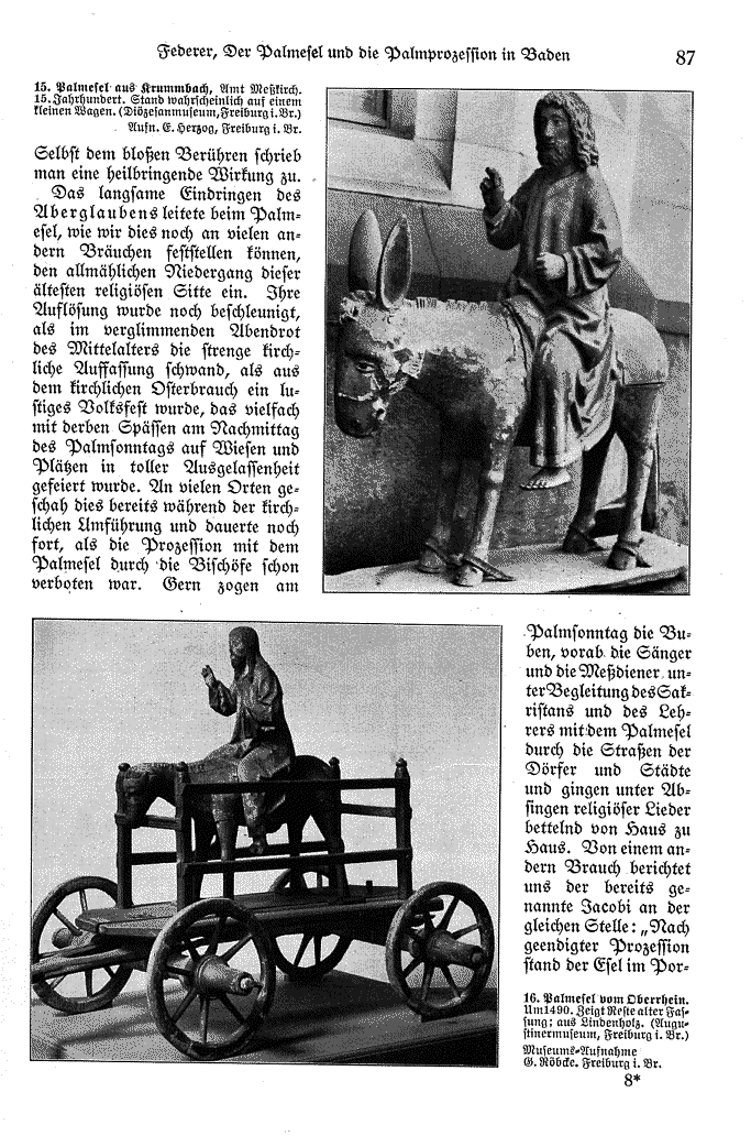 Fritz Federer: Der Palmesel und die Palmprozession in Baden. Liturgisch, kultur- und kunstgeschichtlich, volkskundlich. Mein Heimatland 21 (1934) S. 75-91 |