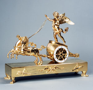 Figurenuhr mit Amor auf einem Streitwagen, Paris um 1805.