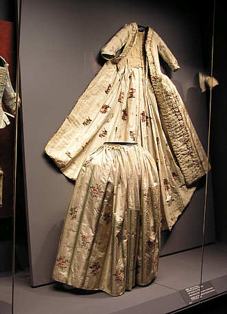 Geöffnetes Kleid a la française: Manteau und Rock (Jupe) sind aus gleichem Stoff und gleich lang, der geöffnete Manteau lässt den Rock sehen. Unter dem Manteau wird ein Mieder getragen.