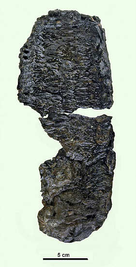 Flechtsandale aus Gehölzbast, die in Ablagerungen einer
