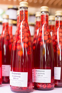 Bild links: Himbeeren mit Apfelessig (für feines Dressing)