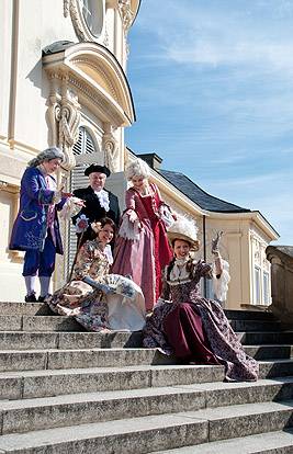 Uhr werden sie von Schlossbewohnern in historischen Kostümen