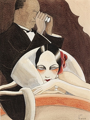 Dodo, Logenlogik, Für die Zeitschrift ULK, 1929, Gouache über Bleistift auf Karton, 40 x 30 cm, Privatsammlung Hamburg, © Krümmer Fine Art