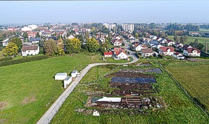 Drohnenaufnahme der offenen Grabungsflächen Im Herbst 2017 mit Blick auf Bad Buchau (Foto: P. Scherrer/LAD)