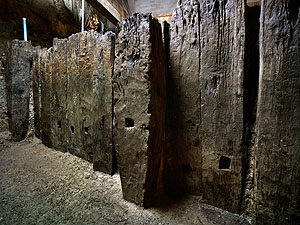 Kölner Hafen. Spundwand aus Eichenpfählen, 1. Jh. n. Chr.© Römisch-Germanisches Museum