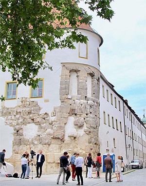 Die Porta Praetoria war einst der Eingang zu dem römischen Militärlager "Castra Regina", das Marc Aurel am nördlichsten Punkt der Donau errichten ließ und aus dem später Regensburg entstand. Die "Porta Praetoria" gilt heute als "römisches Juwel", zuletzt wurde sie für mehrere Millionen Euro aufwändig saniert. Foto: Tourismusprojekt Römerspuren/Jens Henning-Billon