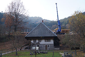 (fmv) Über ein neues Gebäude darf sich das Schwarzwälder Freilichtmuseum Vogtsbauernhof in Gutach freuen. Der im Rahmen der Landesgartenschau Lahr genutzte Ortenaukreis-Pavillon hat einen dauerhaften Platz auf dem Museumsgelände gefunden. Seit Anfang der Woche wird das Holzgebäude mit großer Glasfront hinter dem Tagelöhnerhaus, schräg gegenüber dem modernen Eingangsgebäude, aufgebaut. In den Wintermonaten wird der Pavillon für die kommende Saison eingerichtet.