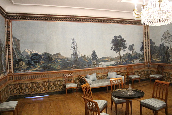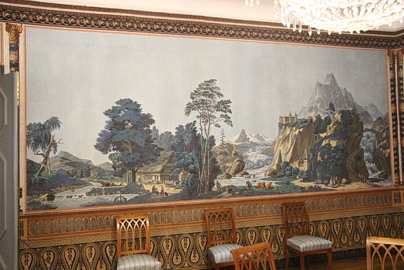 Eines der Vorhaben im Jahr 2018 galt den Hintergründen dieser Tapete - ist sie naturalistisch oder wie und warum wurde bei der Darstellung von der Wirklichkeit abgewichen? Was steckt an Naturerfahrung dahinter? Das Ganze auf dem Hintergrund einer für 2019 konzipierten Themenführung zur Schweizertapete im Appartement der Reichsgräfin von Hochberg.