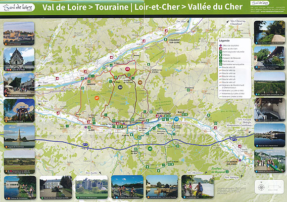 Im Tal des Cher sind sieben Touren ausgewiesen, die nicht nur mit kulturellen Höhepunkten, sondern auch mit Naturschätzen bekannt machen. Die Touren sind sowohl auf einem Gesamt-Prospekt dargestellt als auch auf Einzel-Faltblättern beschrieben, Einschätzungen über Schwierigkeitsgrad, Dauer und Streckenlänge sind ebenso selbstverständlich wie Höhenprofile. Die Karten in den Eiunzelblättern sind sehr übersichtlich (2,2 cm entsprechen 1 km).