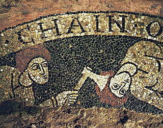 Brudermordszene aus dem Fußbodenmosail in der ehemaligen Klosterkirche Schuttern.