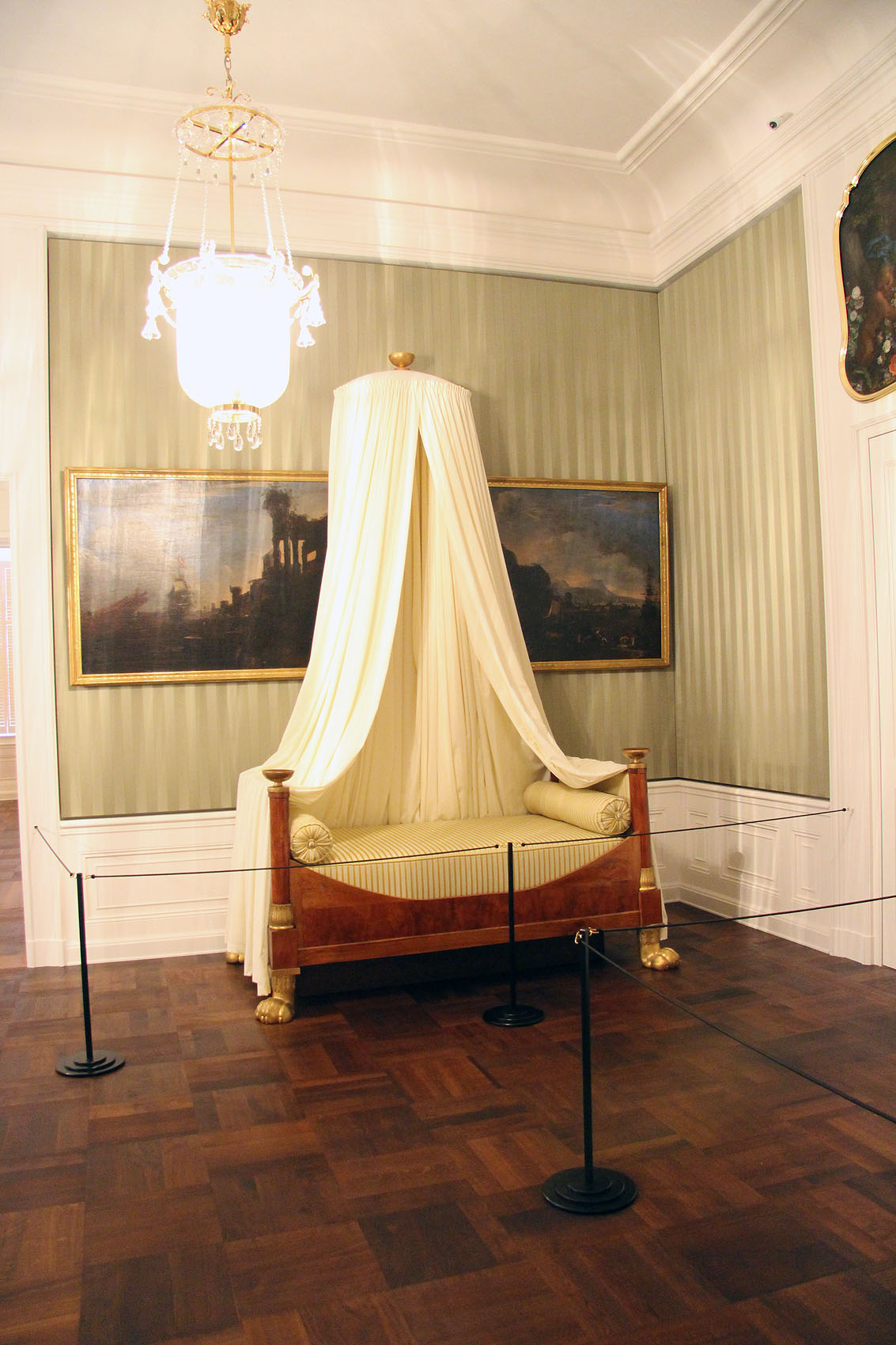 Schloss Bruchsal, Bett im Schlafzimmer der Markgräfin Amalie von Baden.