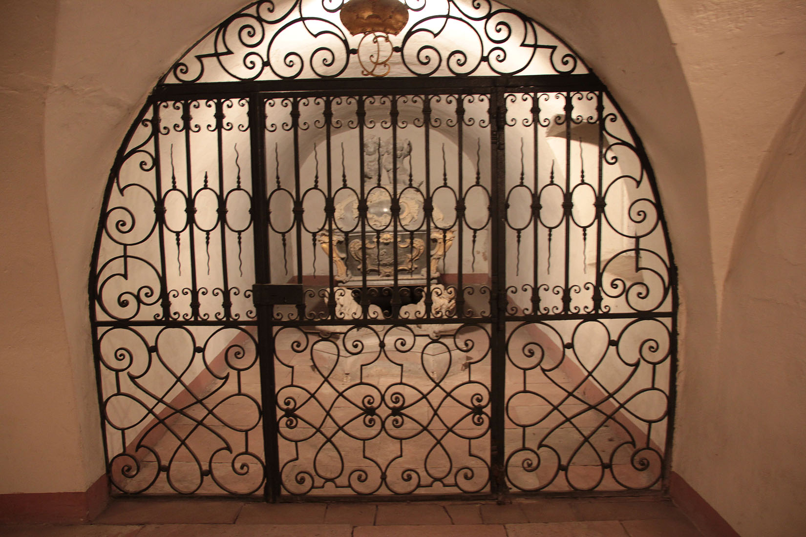 Sarkophag des Kurfürsten Carl Philiip in der Gruft der Schlosskirche. Foto: kulturer.be