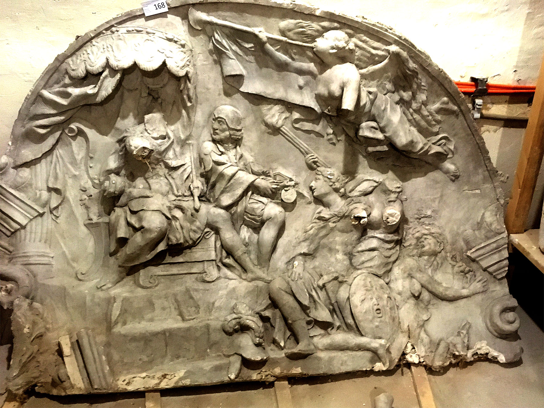 Teil der Stuckdekoration aus dem Prunkschlafzimmer des Kurfürsten Carl Philipp: Kaiser Leopold überreicht dem Türkensieger den Orden von Goldenen Vlies. Foto: kulturer.be