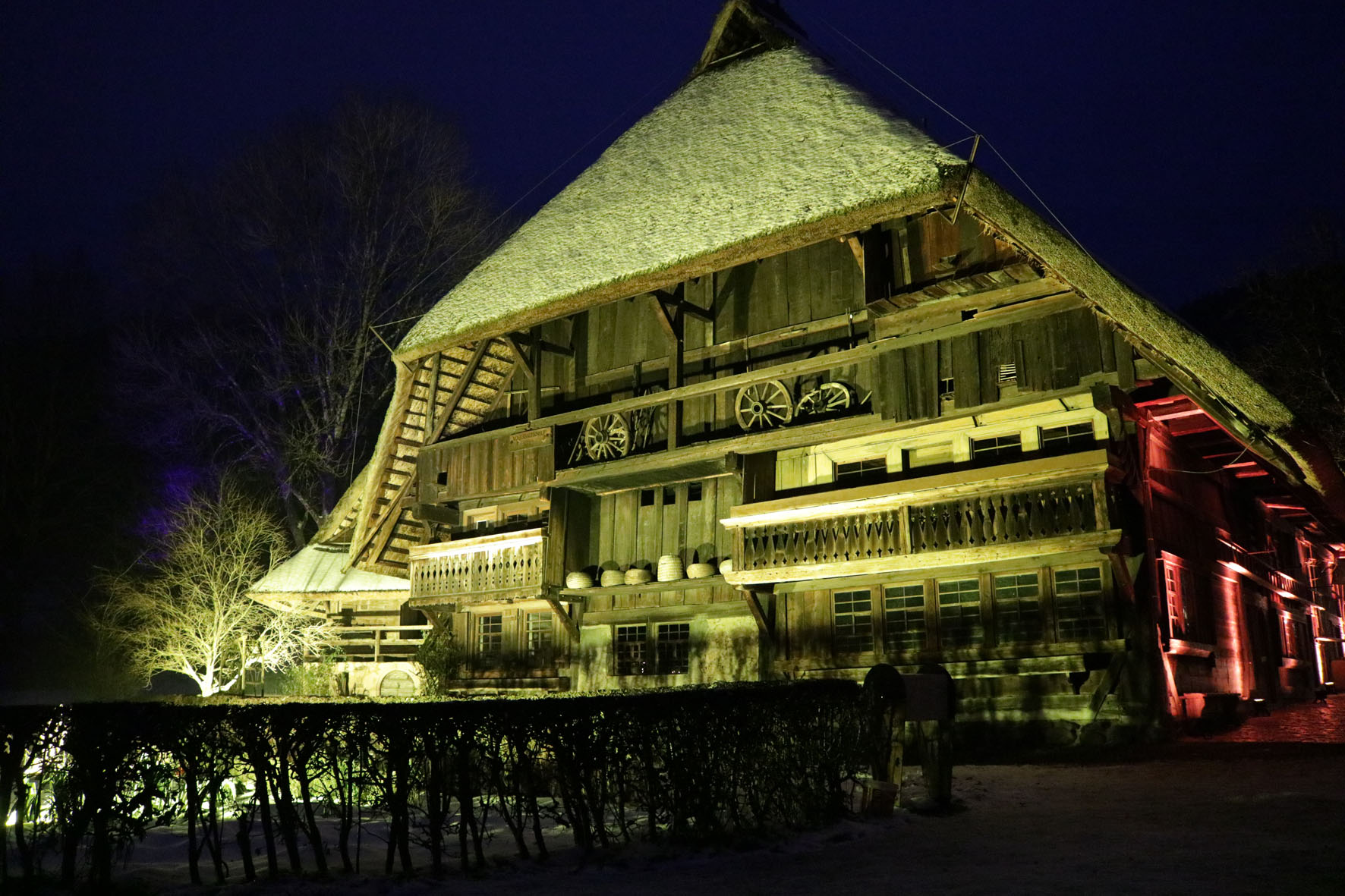 Der Weihnachtsmarkt im Vogtsbauernhof, der jährlich am dritten Adventswochenende stattfindet, wurde erstmals im Jahr 2006 veranstaltet und hat sich über die Jahre zu einem Publikumsmagnet entwickelt. Zwischen 12.000 und 16.000 Besucher aus dem ganzen Land kommen an diesen drei Tagen in den Vogtsbauernhof, um den Markt in dem besonderen Ambiente der historischen Schwarzwaldhöfe zu erleben. Nach der pandemiebedingten Pause im vergangenen Jahr wurde der Weihnachtsmarkt 2021 mit einem neuen Konzept vorbereitet: Anstelle eines klassischen Marktes plante das Museum ein Weihnachtsdorf mit rund 40 regionalen Ausstellern, verteilt auf der sieben Hektar großen, kunstvoll beleuchteten Museumsfläche. Ein festlich musikalisches Rahmenprogramm mit regionalen Künstlern sollte die Besucher bei ihrem abendlichen Spaziergang durch die Schwarzwälder Häuserlandschaft begleiten. „Wir halten an diesem Konzept weiterhin fest und sind davon überzeugt, dass wir es im kommenden Jahr umsetzen und unsere Gäste damit begeistern können.“, so Margit Langer.