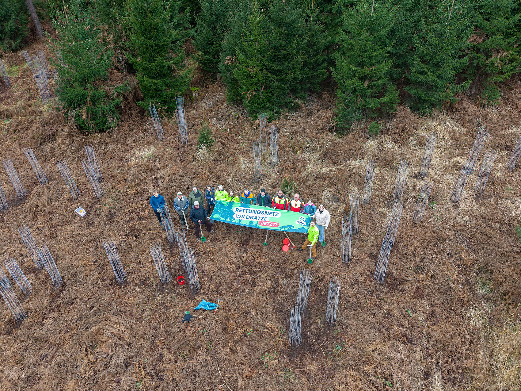 Durch die Zusammenarbeit des BUND und der Stadt Eberbach entstehen artenreiche Lebensräume für die Europäische Wildkatze und andere seltene Arten auf Flächen, die wegen eines Befalls mit Borkenkäfern leergeräumt waren. Die Blüten und Beeren der gepflanzten Sträucher entlang des Waldrands bieten Nahrung für Insekten und Vögel und gleichzeitig Versteckmöglichkeiten für die Wildkatze. Sie schützen den Wald außerdem besser vor Austrocknung und die klimarobusten Laubbäume entwickeln sich zum Wald von morgen. Insgesamt pflanzen der BUND Baden-Württemberg und die Stadt Eberbach im Projekt „Wildkatzenwälder von morgen“ über 2.000 Setzlinge auf drei verschiedenen Flächen. Das Projekt wird im Bundesprogramm Biologische Vielfalt gefördert.