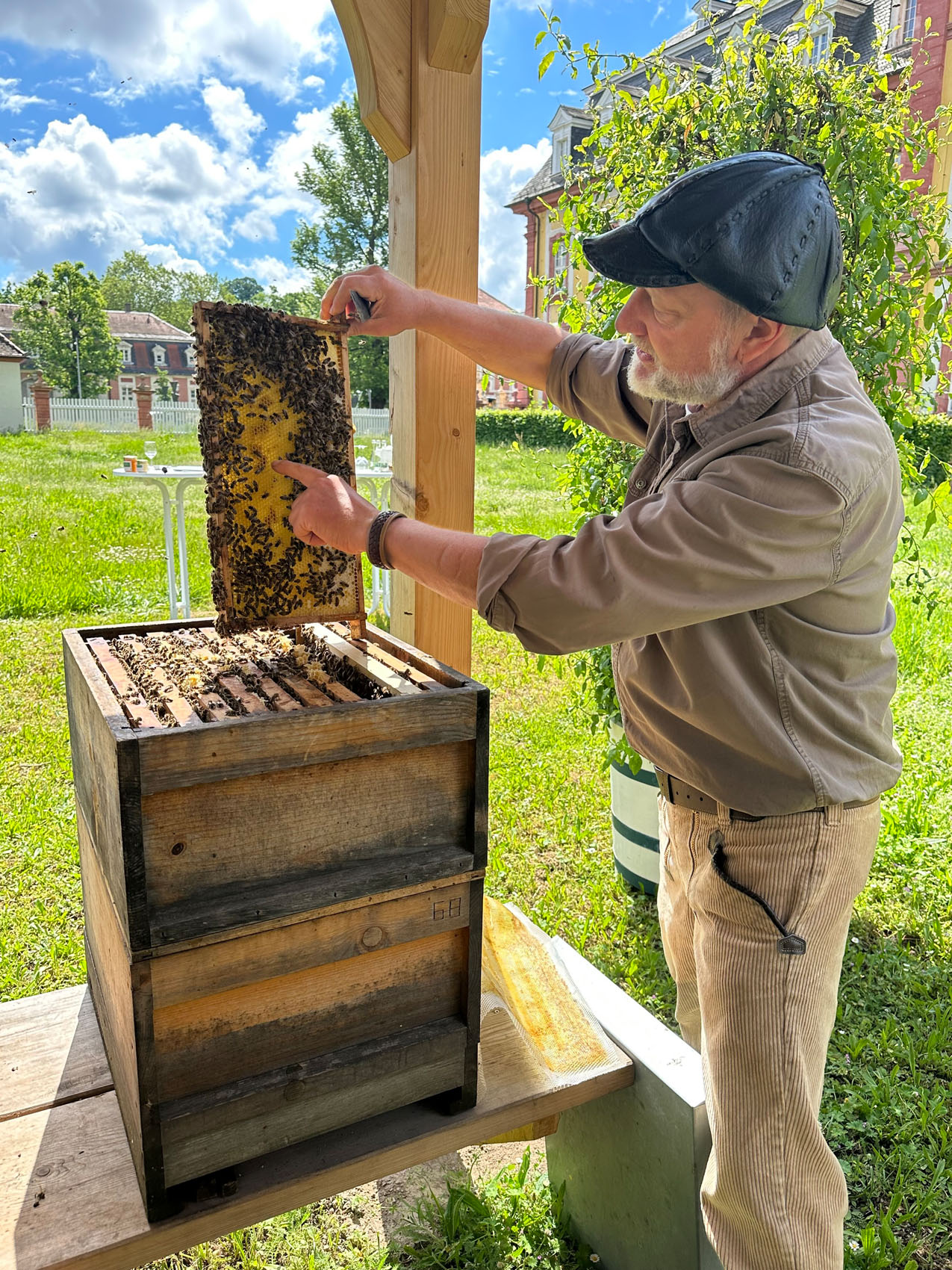 (ssg) An den Bienenstöcken im Garten von Schloss Bruchsal herrscht reges Treiben – in der Sonderführung „Forschen, entdecken, schützen“ mit Imker Martin Rausch am Sonntag, 10. August, geht es den fleißigen Insekten auf die Spur. Um 13.00 und 15.00 Uhr erfahren die Teilnehmenden vom Experten, wie Honig entsteht, wie sich ein Bienenvolk organisiert und weshalb die Insekten so wichtig für das Ökosystem sind. Zudem können alle Interessierten ab sofort mit einem Insektenhotel in der Form eines Schlosses etwas für den Artenschutz tun.
