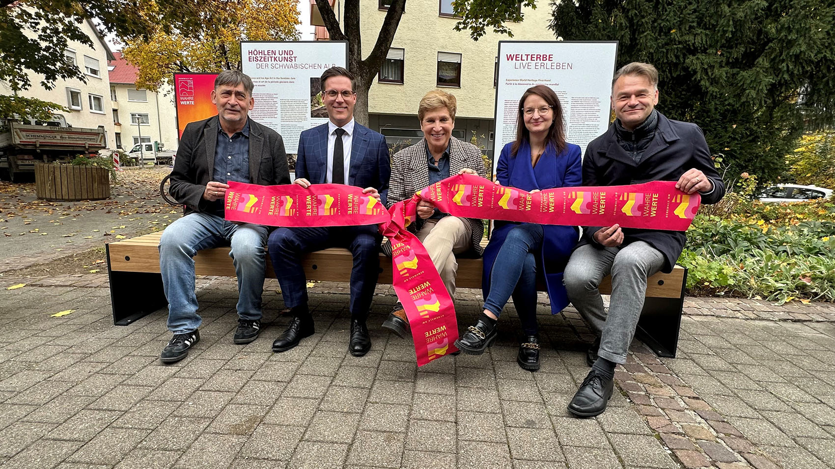 (mlw-bw) Gemeinsam mit der Stadt Blaubeuren hat die Ministerin für Landesentwicklung und Wohnen, Nicole Razavi MdL, heute (20. Oktober) im Park an der Karlstraße in Blaubeuren zwei WahreWunderBänke eingeweiht. Die neuen Informationseinheiten machen auf die UNESCO-Welterbestätte „Höhlen und Eiszeitkunst der Schwäbischen Alb“ sowie auf das gesamte Welterbe in Baden-Württemberg aufmerksam.