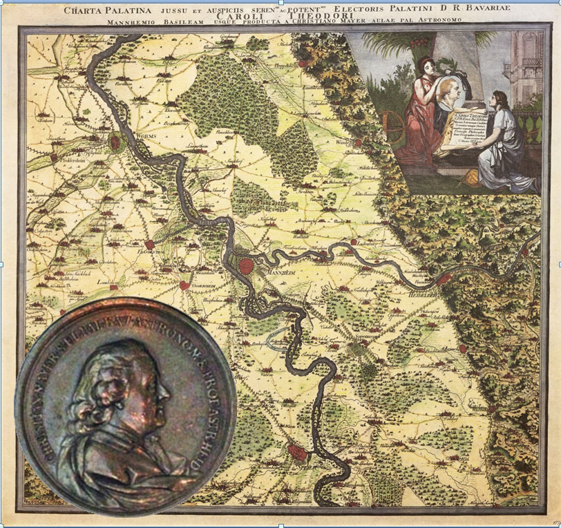 Acht Jahre lang hatte der kurpfälzische Hofastronom Christian Mayer an der Kurpfalz-Karte gearbeitet. Acht Jahre lang hatte der kurpfälzische Hofastronom Christian Mayer an der Kurpfalz-Karte gearbeitet.