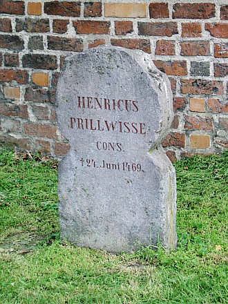 Gedenkstein für den 1469 bei einer Fehde vor der Friedländer Tor ums Leben gekommenen Bürgermeister Heinrich Prillwisse.