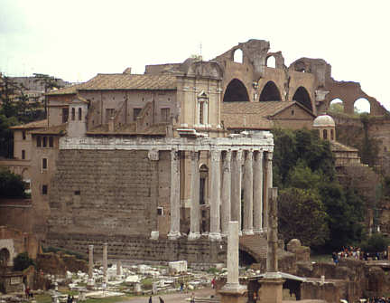 der Ostseite des Forum im Winkel zwischen Basilika Aemilia